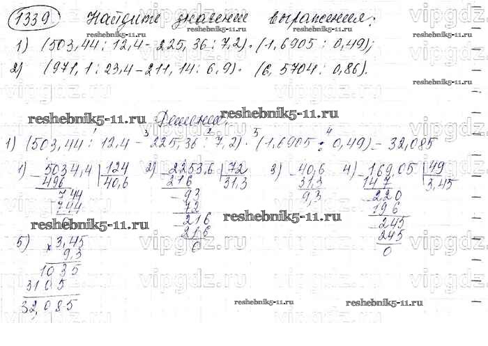 Готовая домашняя работа с ответами по Математике за 6 класс Виленкин, Жохов, Чесноков, Шварцбурд Учебник Мнемозина 2014 ФГОС - §8. Решение уравнений 1339