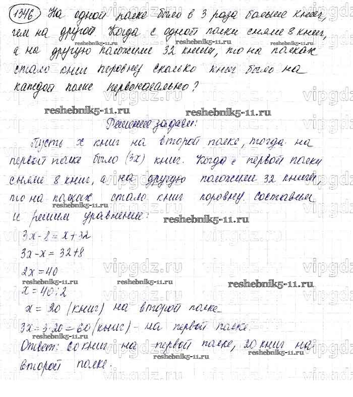 Готовая домашняя работа с ответами по Математике за 6 класс Виленкин, Жохов, Чесноков, Шварцбурд Учебник Мнемозина 2014 ФГОС - §8. Решение уравнений 1346