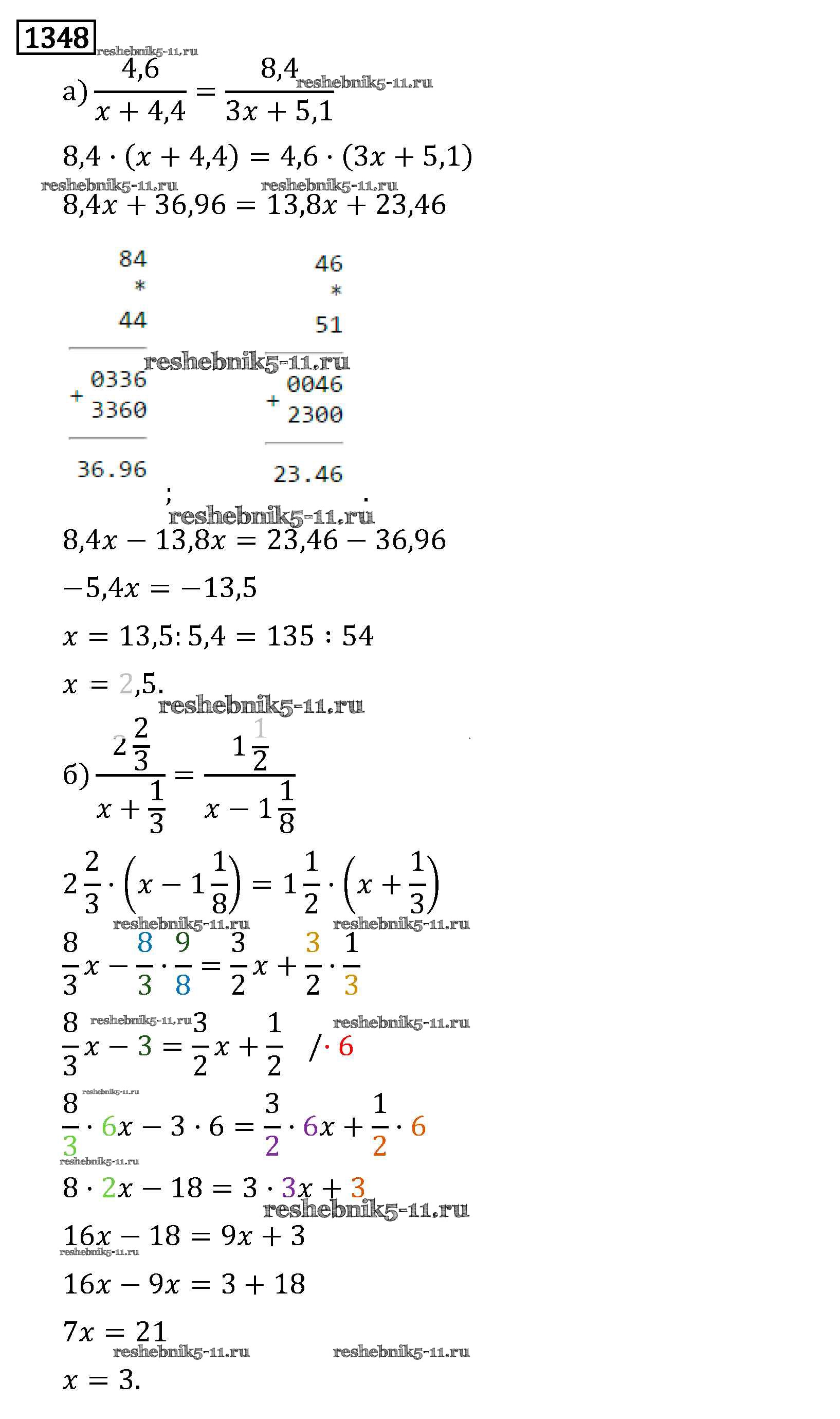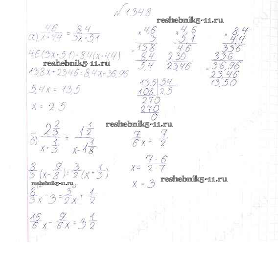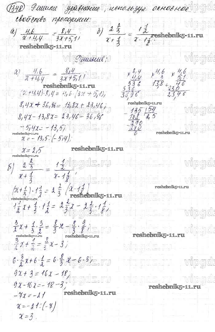 Готовая домашняя работа с ответами по Математике за 6 класс Виленкин, Жохов, Чесноков, Шварцбурд Учебник Мнемозина 2014 ФГОС - §8. Решение уравнений 1348
