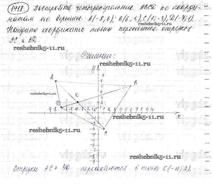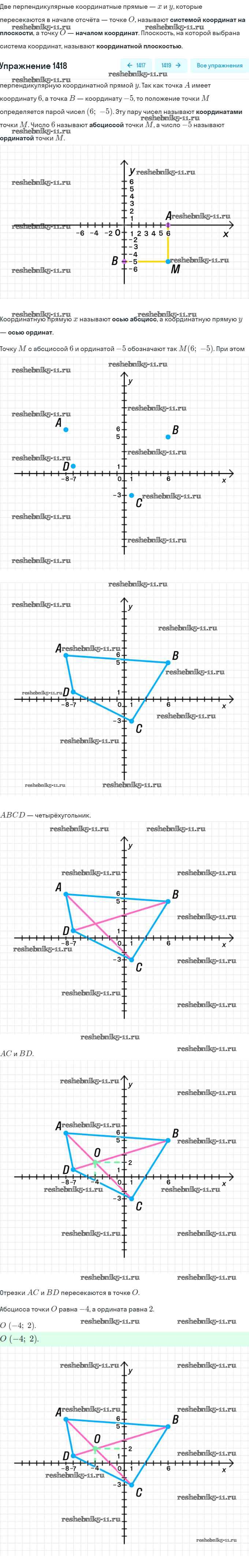 Готовая домашняя работа с ответами по Математике за 6 класс Виленкин, Жохов, Чесноков, Шварцбурд Учебник Мнемозина 2014 ФГОС - §9. Координаты на плоскости 1418