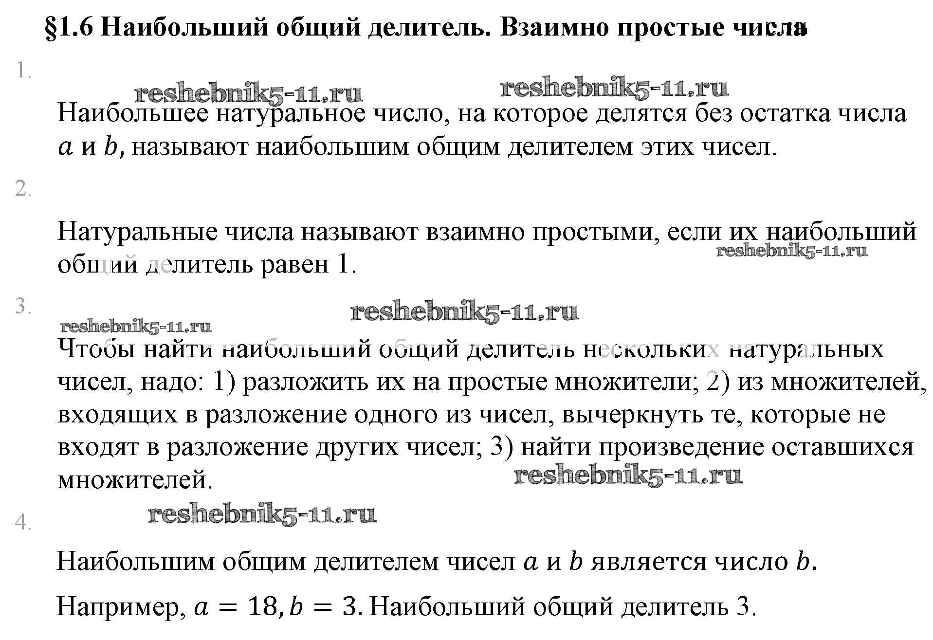 Готовая домашняя работа с ответами по Математике за 6 класс Виленкин, Жохов, Чесноков, Шварцбурд Учебник Мнемозина 2014 ФГОС - Вопросы к параграфу 1.6