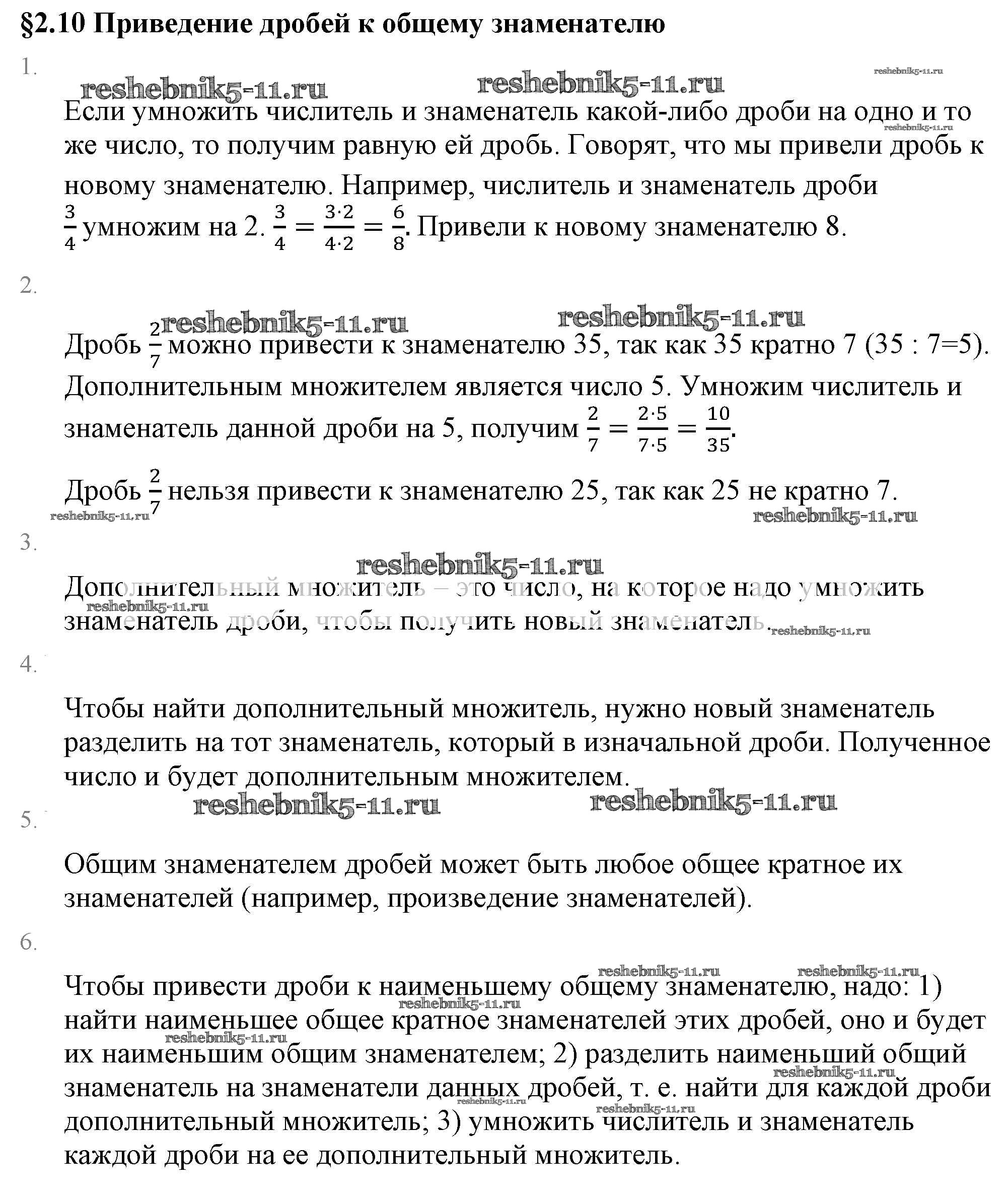 Готовая домашняя работа с ответами по Математике за 6 класс Виленкин, Жохов, Чесноков, Шварцбурд Учебник Мнемозина 2014 ФГОС - Вопросы к параграфу 2.10