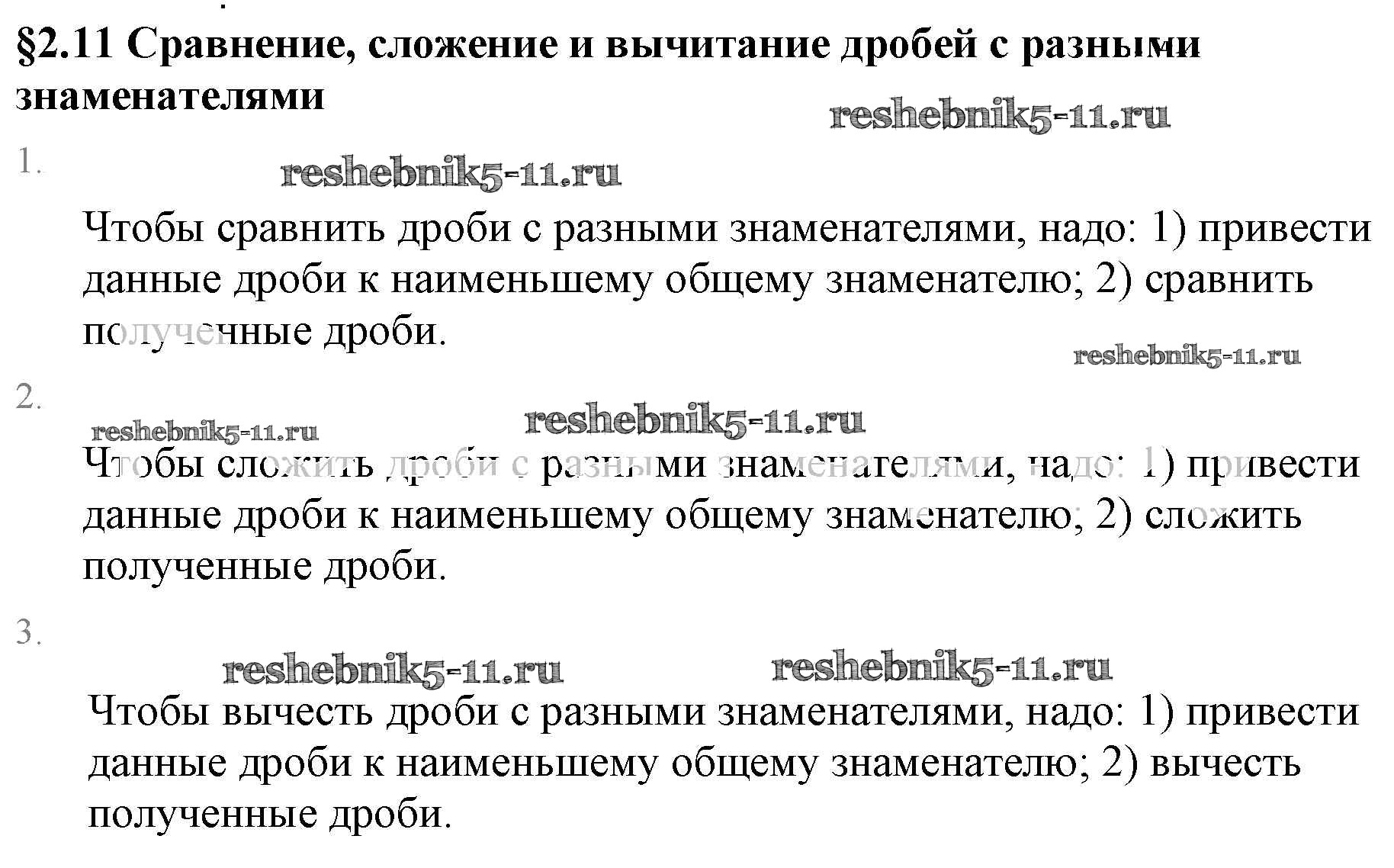 Готовая домашняя работа с ответами по Математике за 6 класс Виленкин, Жохов, Чесноков, Шварцбурд Учебник Мнемозина 2014 ФГОС - Вопросы к параграфу 2.11
