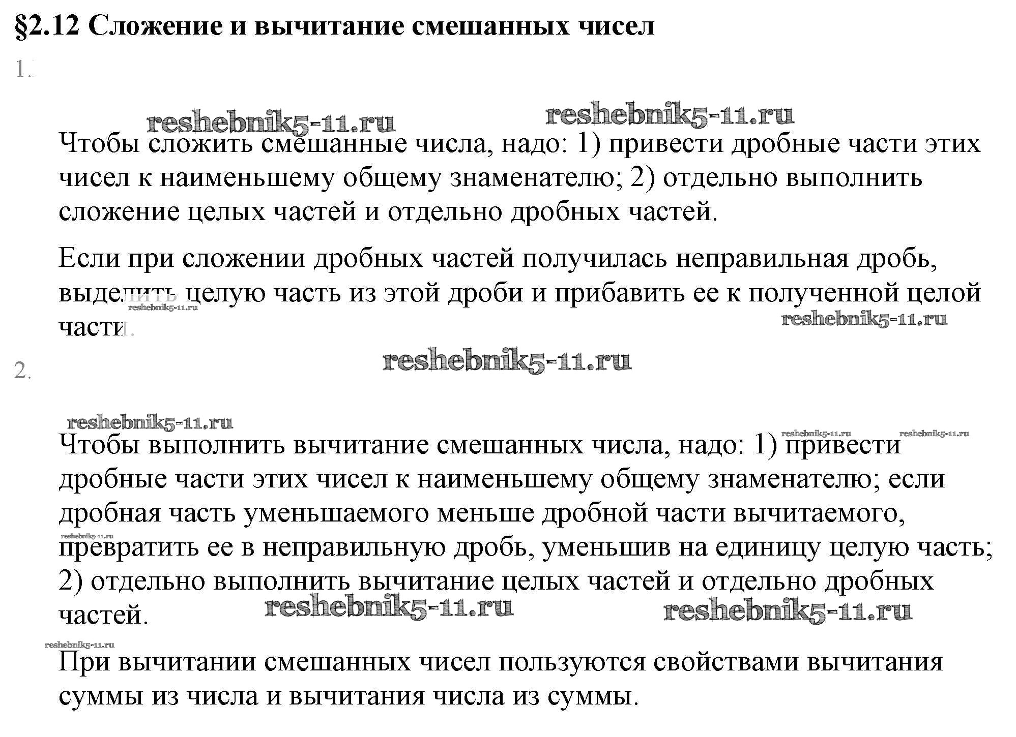 Готовая домашняя работа с ответами по Математике за 6 класс Виленкин, Жохов, Чесноков, Шварцбурд Учебник Мнемозина 2014 ФГОС - Вопросы к параграфу 2.12