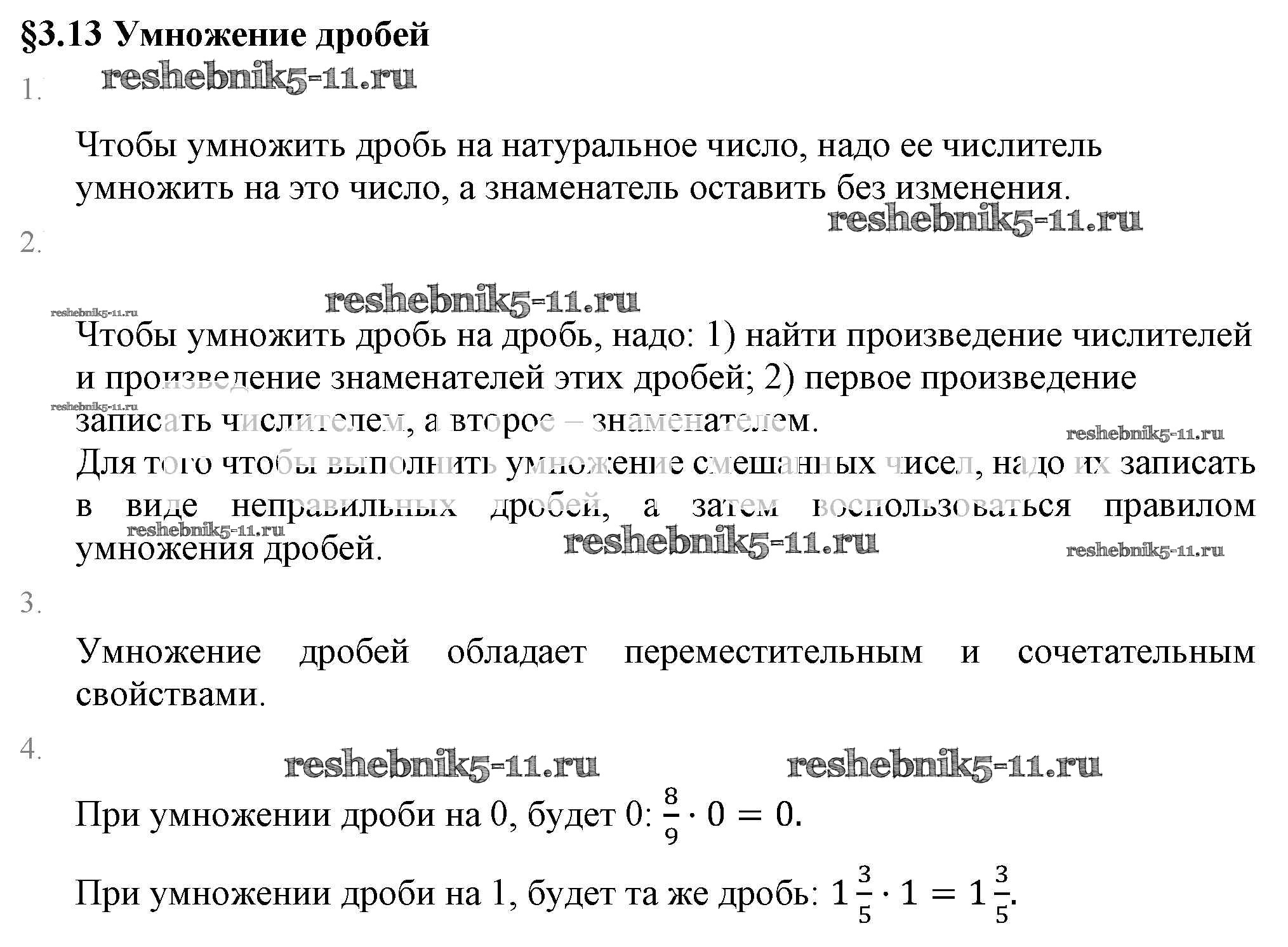 Готовая домашняя работа с ответами по Математике за 6 класс Виленкин, Жохов, Чесноков, Шварцбурд Учебник Мнемозина 2014 ФГОС - Вопросы к параграфу 3.13