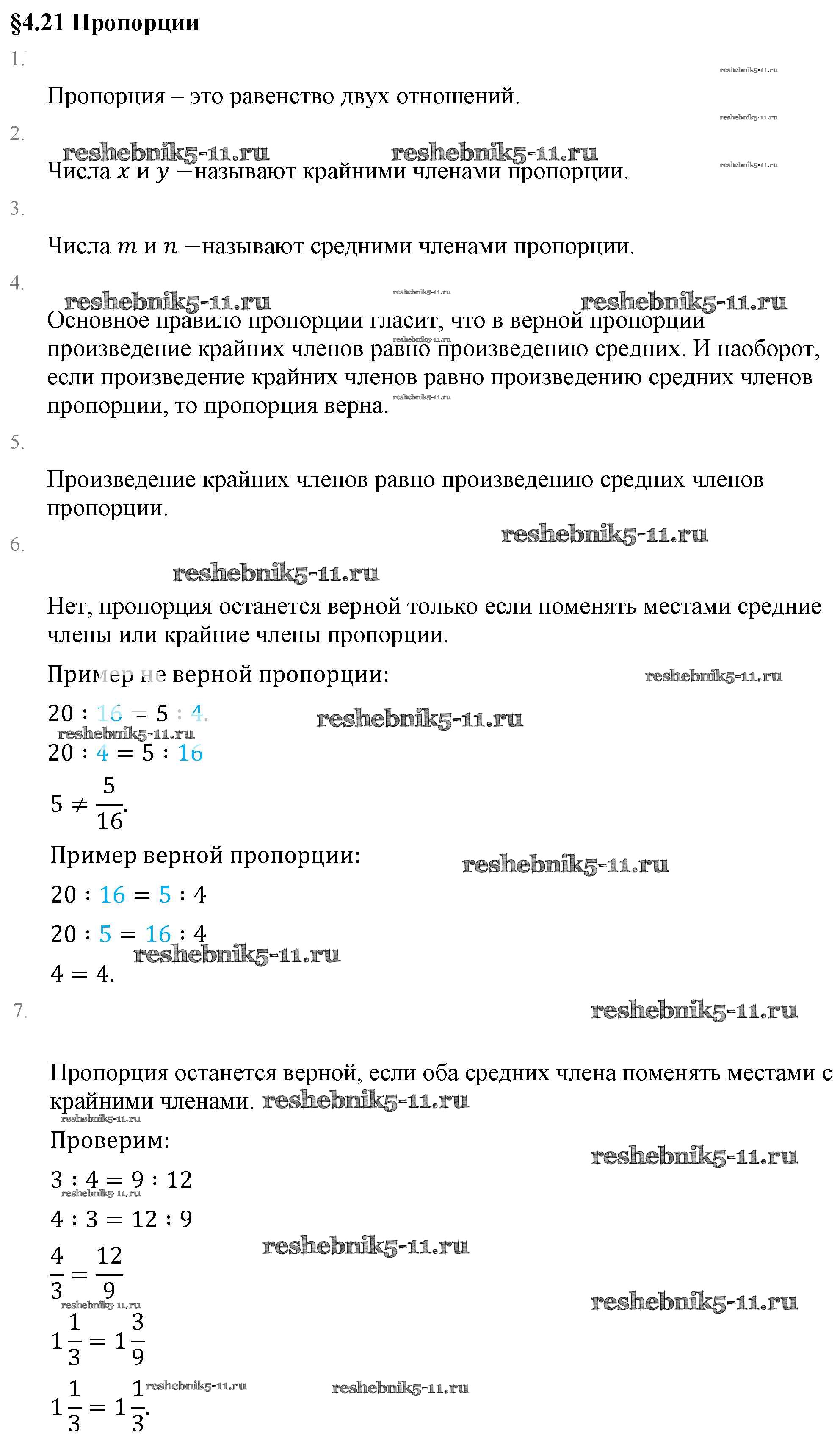 Готовая домашняя работа с ответами по Математике за 6 класс Виленкин, Жохов, Чесноков, Шварцбурд Учебник Мнемозина 2014 ФГОС - Вопросы к параграфу 4.21