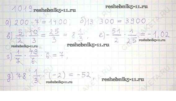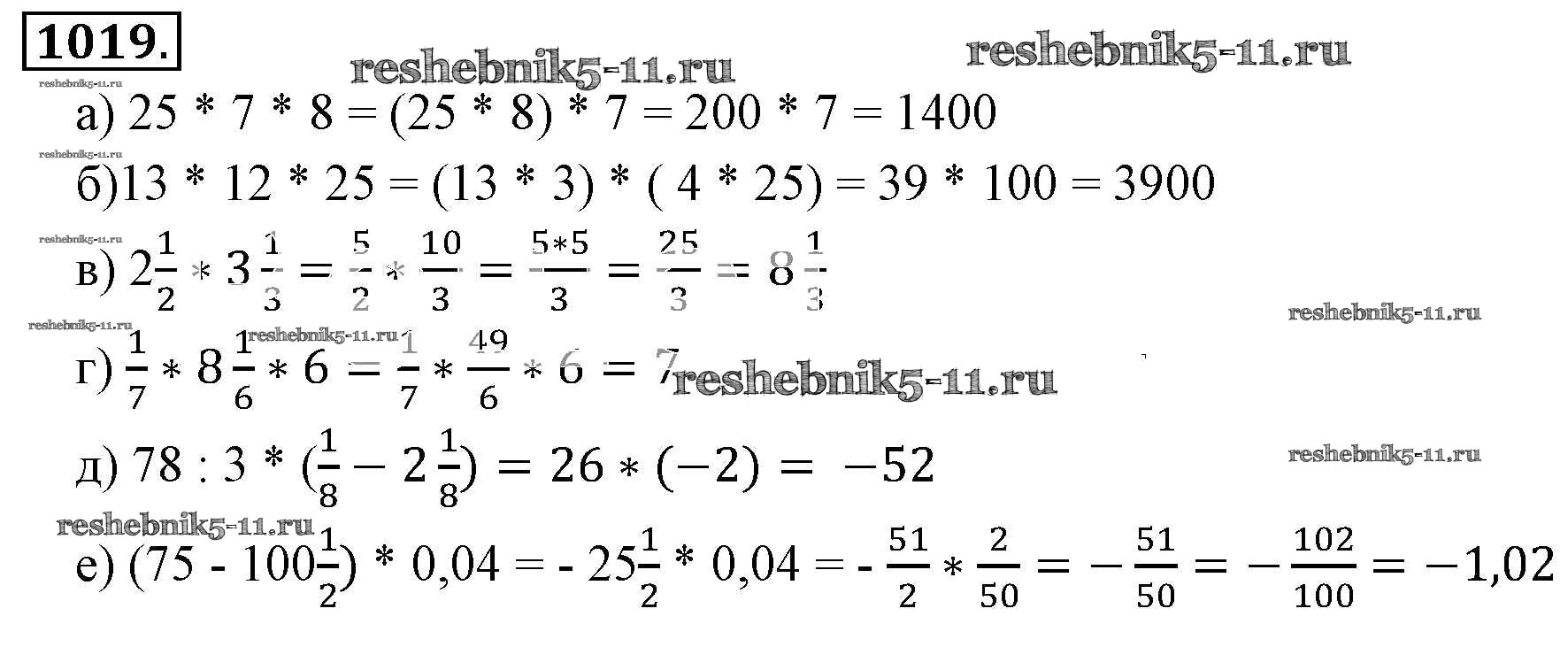 Готовая домашняя работа с ответами по Математике за 6 класс Никольский, Потапов, Решетников, Шевкин Учебник МГУ - школе Просвещение 2014 ФГОС - Номера 1019