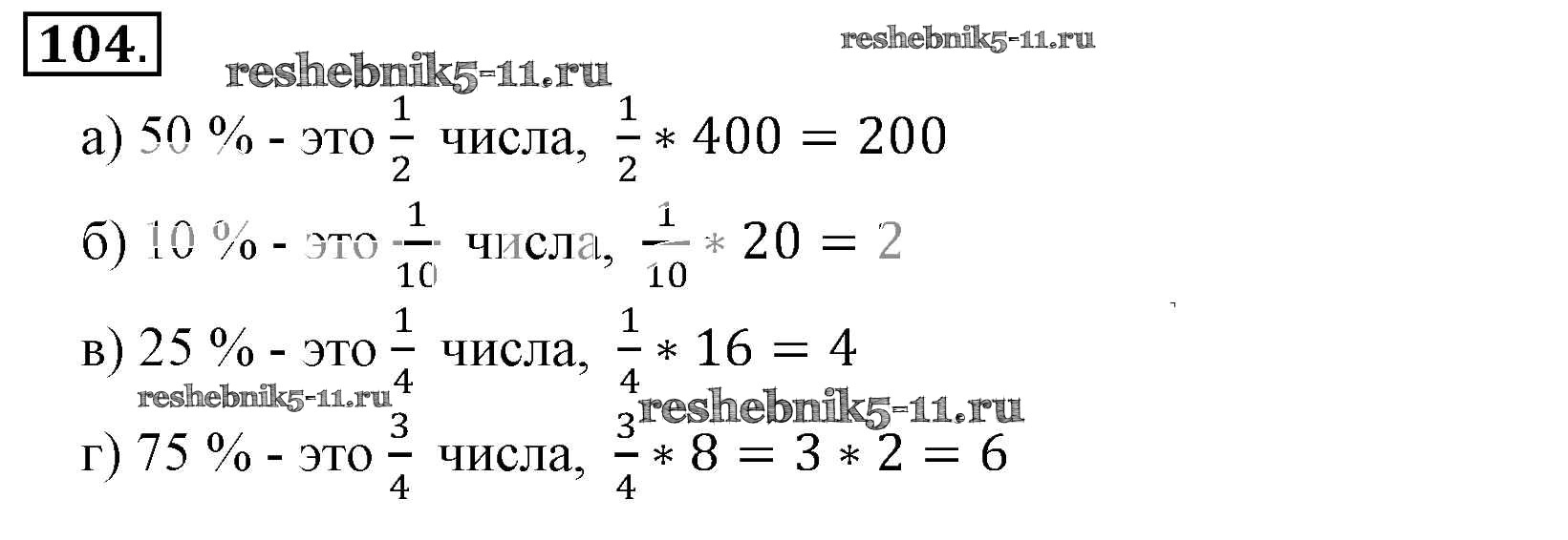 Готовая домашняя работа с ответами по Математике за 6 класс Никольский, Потапов, Решетников, Шевкин Учебник МГУ - школе Просвещение 2014 ФГОС - Номера 104