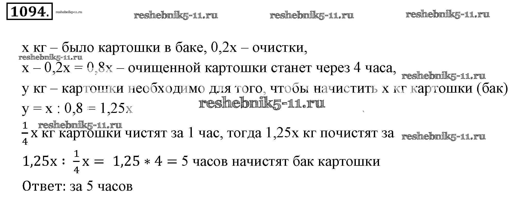 Готовая домашняя работа с ответами по Математике за 6 класс Никольский, Потапов, Решетников, Шевкин Учебник МГУ - школе Просвещение 2014 ФГОС - Номера 1094
