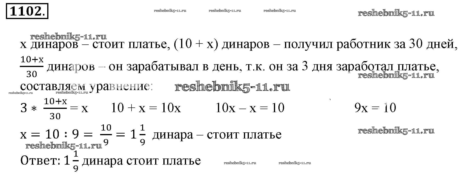 Готовая домашняя работа с ответами по Математике за 6 класс Никольский, Потапов, Решетников, Шевкин Учебник МГУ - школе Просвещение 2014 ФГОС - Номера 1102