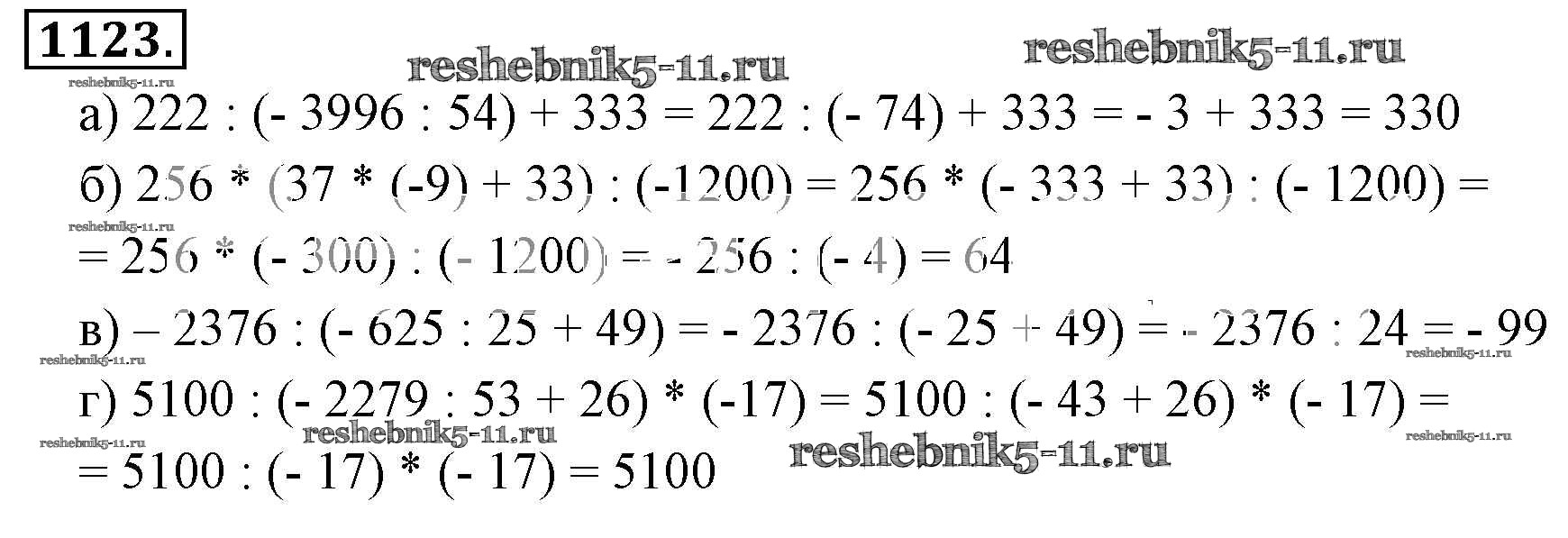 Готовая домашняя работа с ответами по Математике за 6 класс Никольский, Потапов, Решетников, Шевкин Учебник МГУ - школе Просвещение 2014 ФГОС - Номера 1123