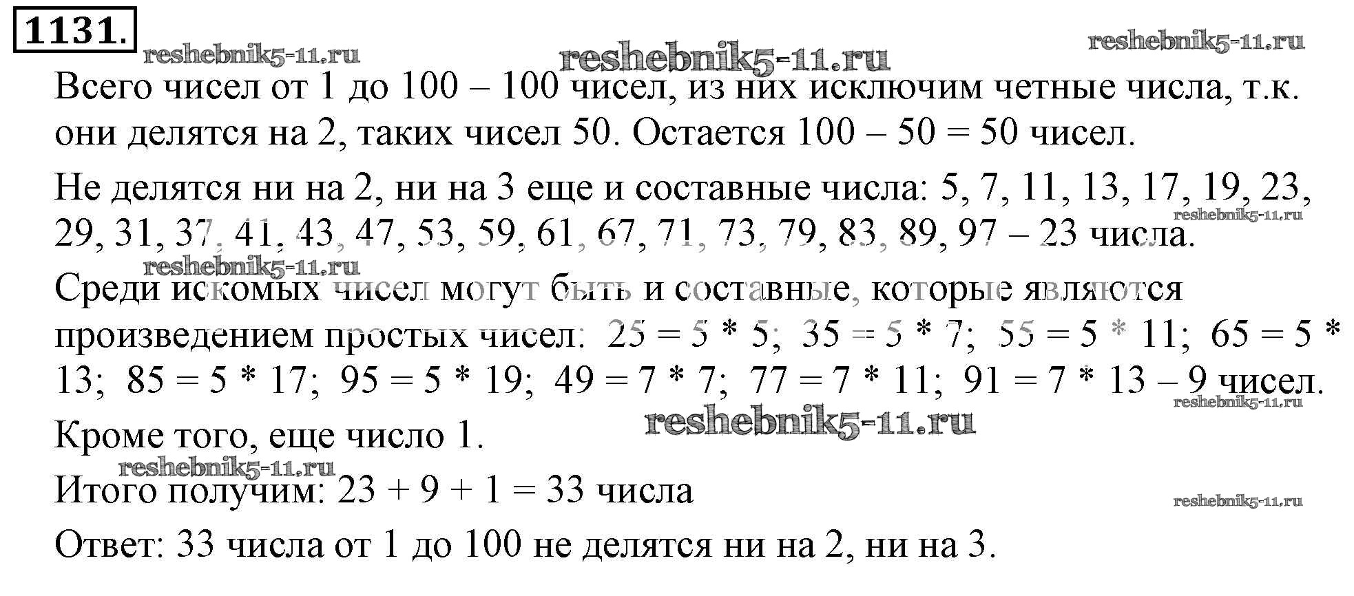 Готовая домашняя работа с ответами по Математике за 6 класс Никольский, Потапов, Решетников, Шевкин Учебник МГУ - школе Просвещение 2014 ФГОС - Номера 1131