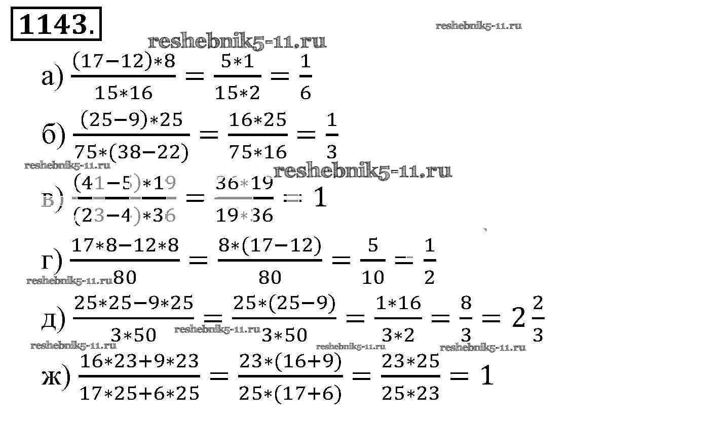 Готовая домашняя работа с ответами по Математике за 6 класс Никольский, Потапов, Решетников, Шевкин Учебник МГУ - школе Просвещение 2014 ФГОС - Номера 1143
