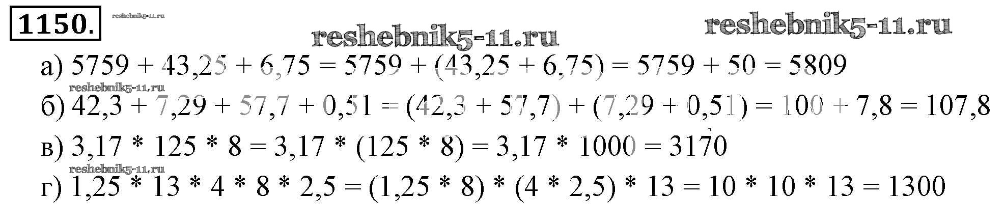 Готовая домашняя работа с ответами по Математике за 6 класс Никольский, Потапов, Решетников, Шевкин Учебник МГУ - школе Просвещение 2014 ФГОС - Номера 1150