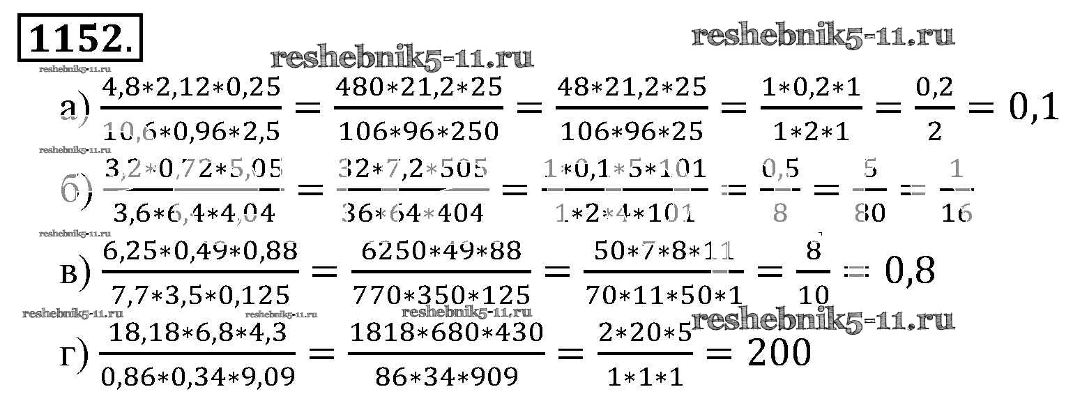 Готовая домашняя работа с ответами по Математике за 6 класс Никольский, Потапов, Решетников, Шевкин Учебник МГУ - школе Просвещение 2014 ФГОС - Номера 1152