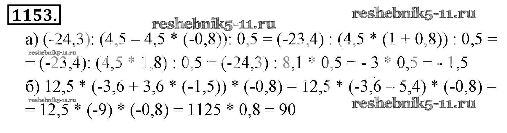 Готовая домашняя работа с ответами по Математике за 6 класс Никольский, Потапов, Решетников, Шевкин Учебник МГУ - школе Просвещение 2014 ФГОС - Номера 1153