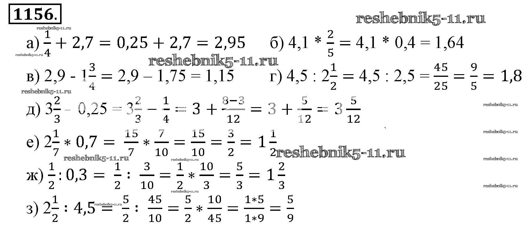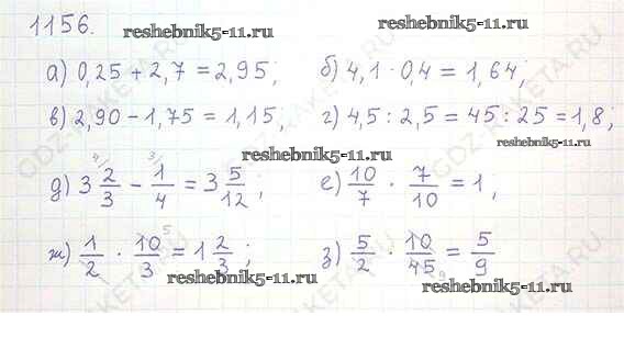 Готовая домашняя работа с ответами по Математике за 6 класс Никольский, Потапов, Решетников, Шевкин Учебник МГУ - школе Просвещение 2014 ФГОС - Номера 1156