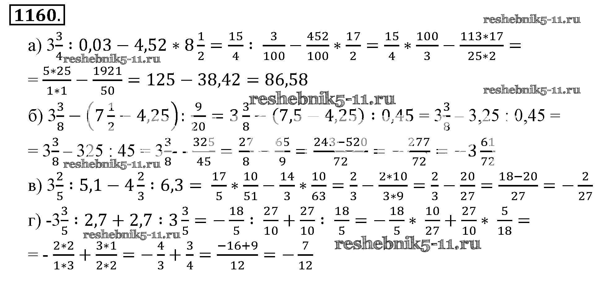 Готовая домашняя работа с ответами по Математике за 6 класс Никольский, Потапов, Решетников, Шевкин Учебник МГУ - школе Просвещение 2014 ФГОС - Номера 1160