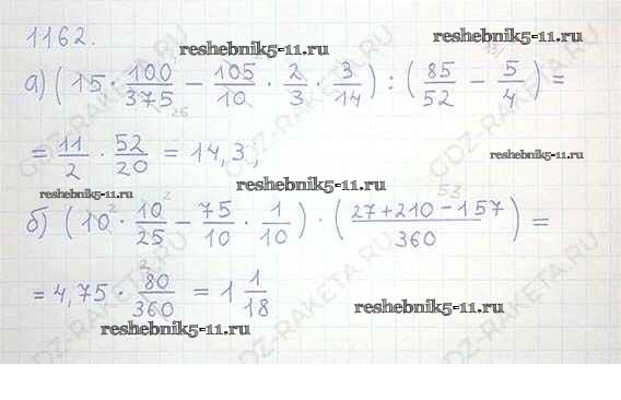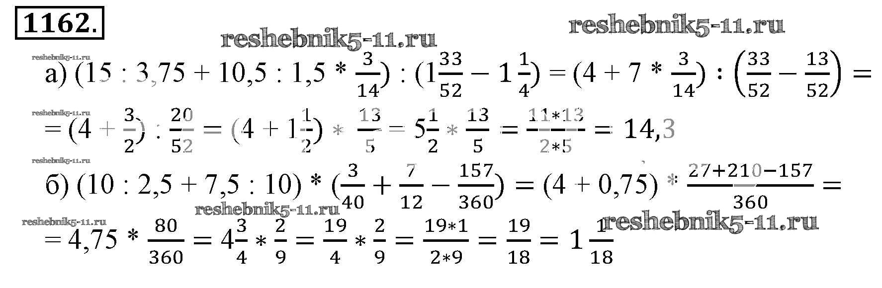 Готовая домашняя работа с ответами по Математике за 6 класс Никольский, Потапов, Решетников, Шевкин Учебник МГУ - школе Просвещение 2014 ФГОС - Номера 1162