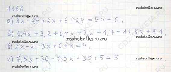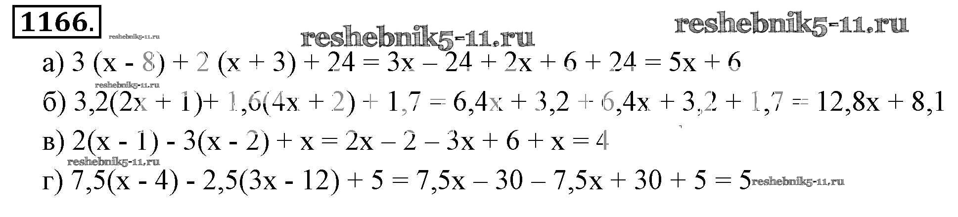 Готовая домашняя работа с ответами по Математике за 6 класс Никольский, Потапов, Решетников, Шевкин Учебник МГУ - школе Просвещение 2014 ФГОС - Номера 1166
