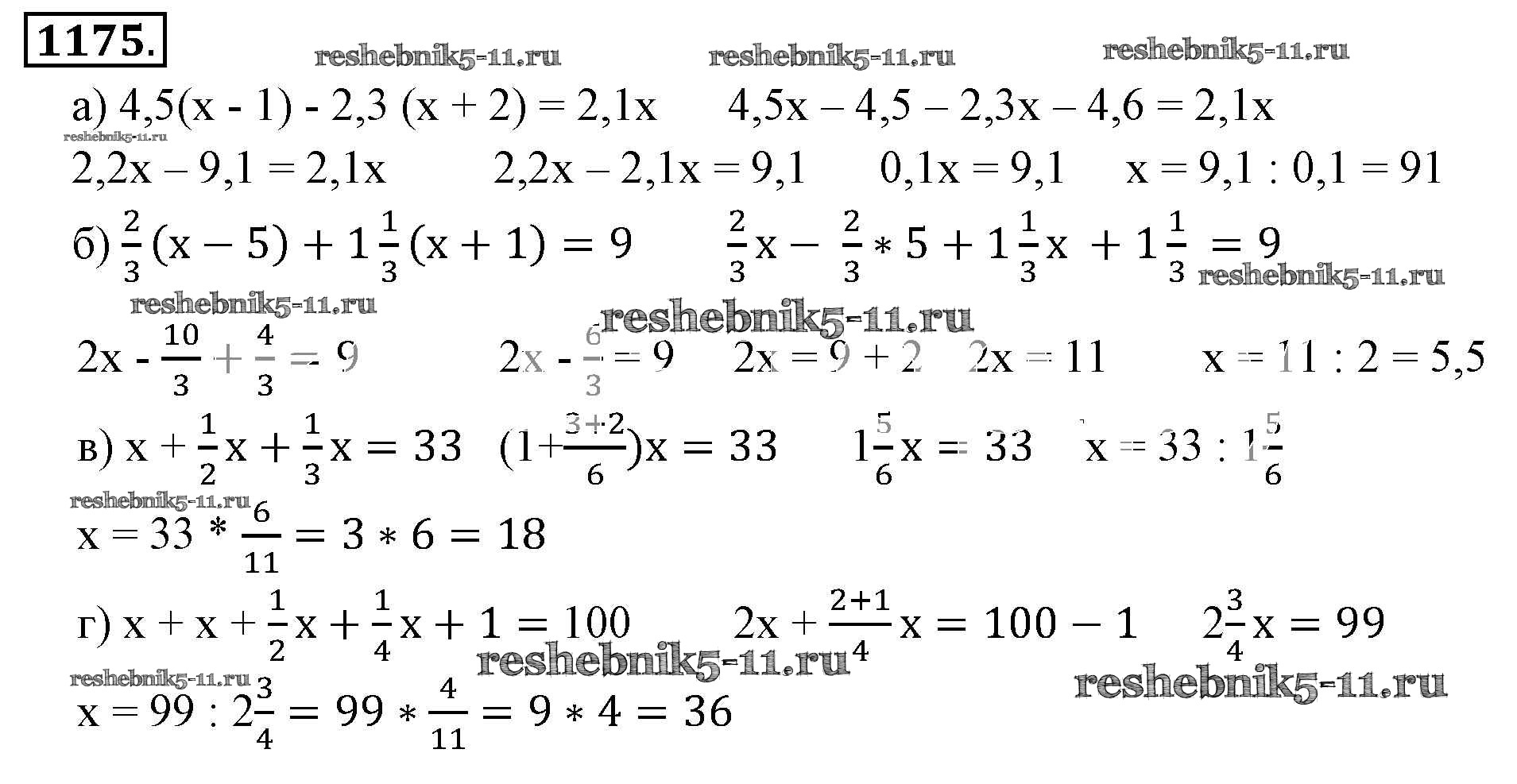 Готовая домашняя работа с ответами по Математике за 6 класс Никольский, Потапов, Решетников, Шевкин Учебник МГУ - школе Просвещение 2014 ФГОС - Номера 1175