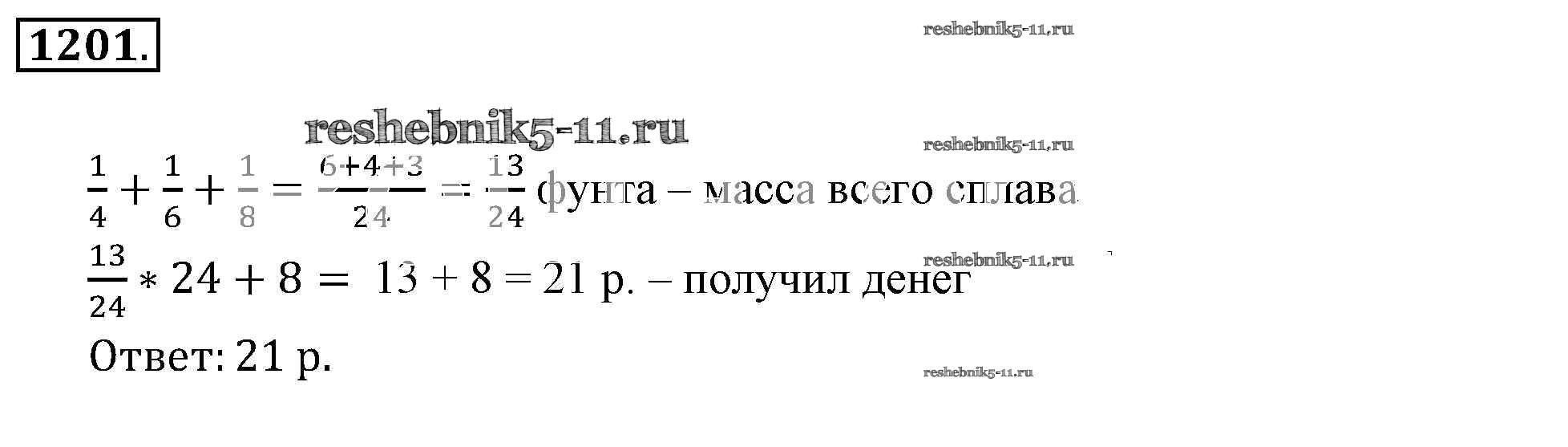 Готовая домашняя работа с ответами по Математике за 6 класс Никольский, Потапов, Решетников, Шевкин Учебник МГУ - школе Просвещение 2014 ФГОС - Номера 1201