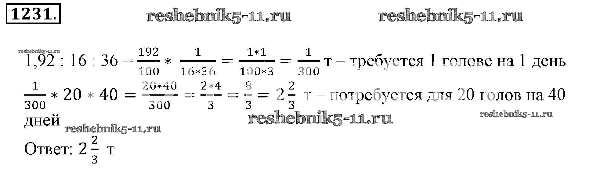 Готовая домашняя работа с ответами по Математике за 6 класс Никольский, Потапов, Решетников, Шевкин Учебник МГУ - школе Просвещение 2014 ФГОС - Номера 1231