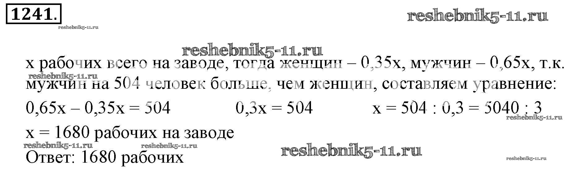 Готовая домашняя работа с ответами по Математике за 6 класс Никольский, Потапов, Решетников, Шевкин Учебник МГУ - школе Просвещение 2014 ФГОС - Номера 1241