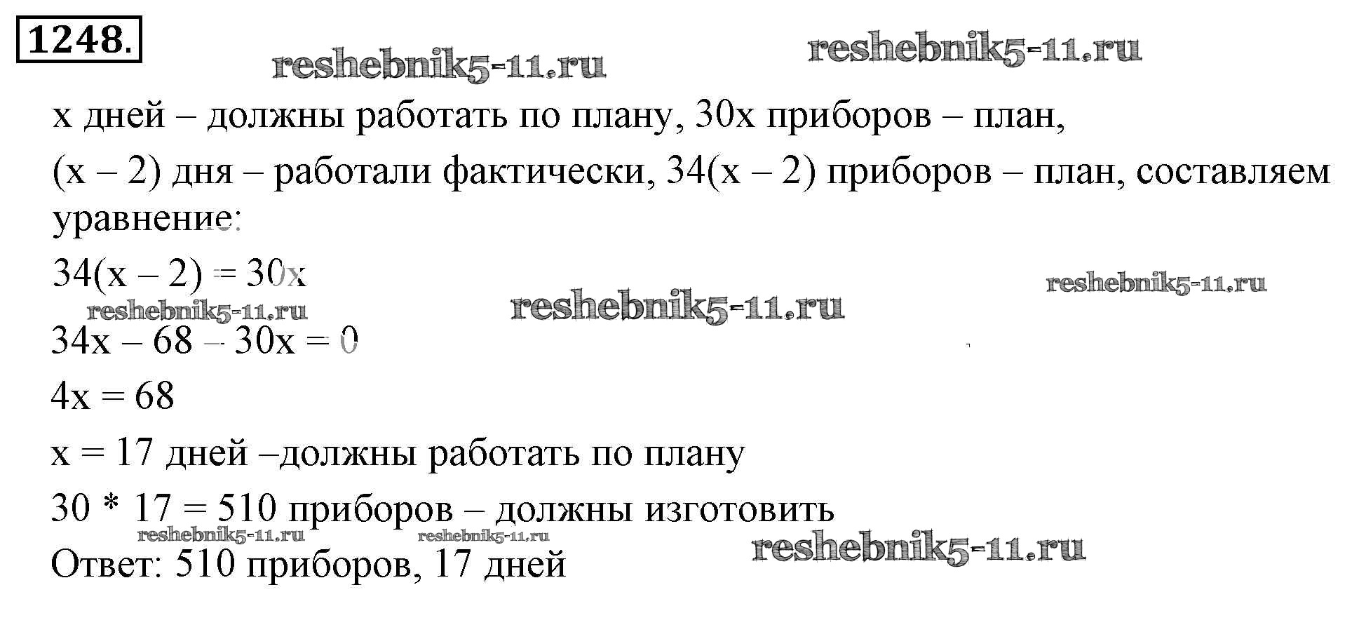 Готовая домашняя работа с ответами по Математике за 6 класс Никольский, Потапов, Решетников, Шевкин Учебник МГУ - школе Просвещение 2014 ФГОС - Номера 1248