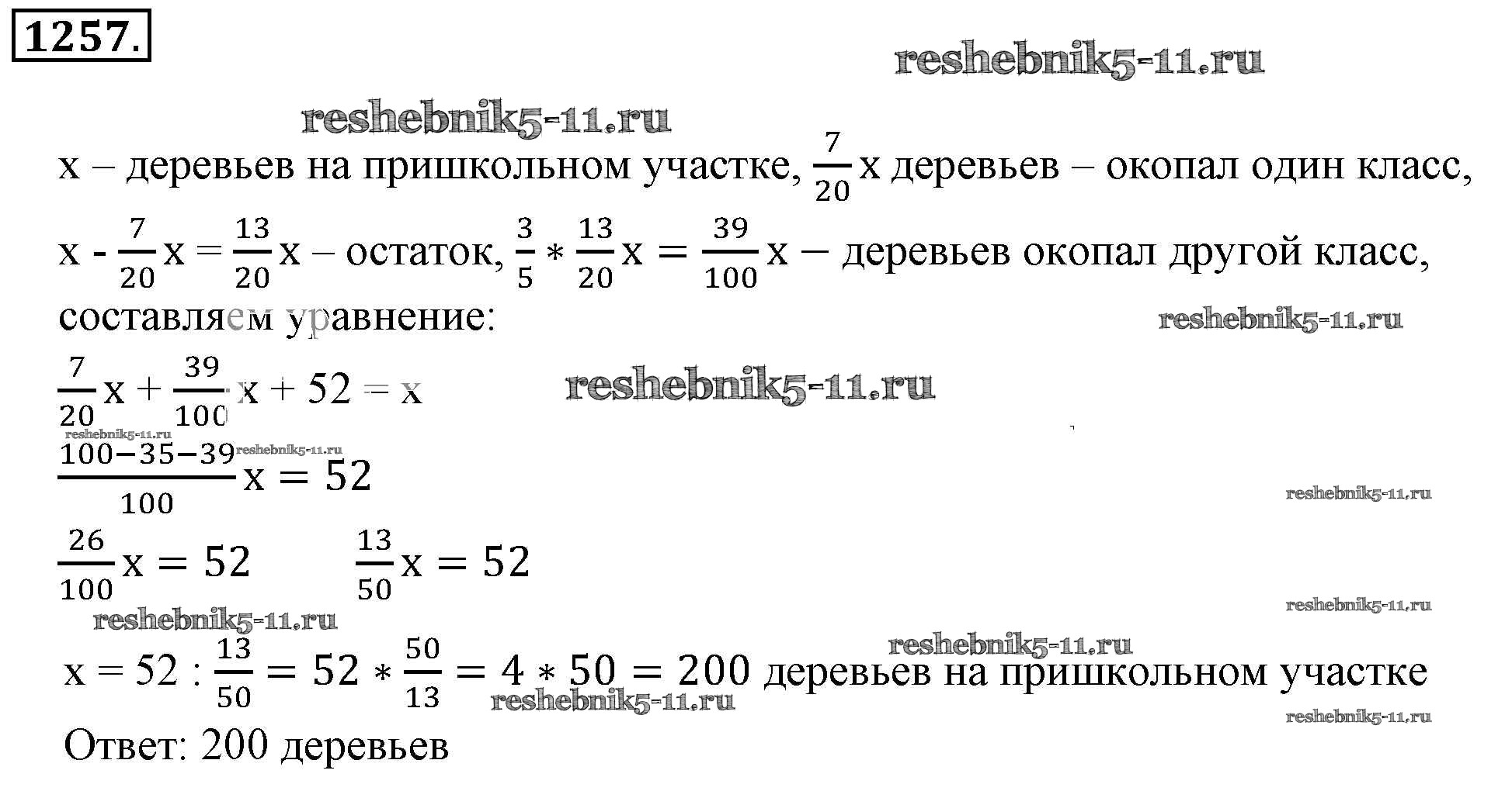 Готовая домашняя работа с ответами по Математике за 6 класс Никольский, Потапов, Решетников, Шевкин Учебник МГУ - школе Просвещение 2014 ФГОС - Номера 1257