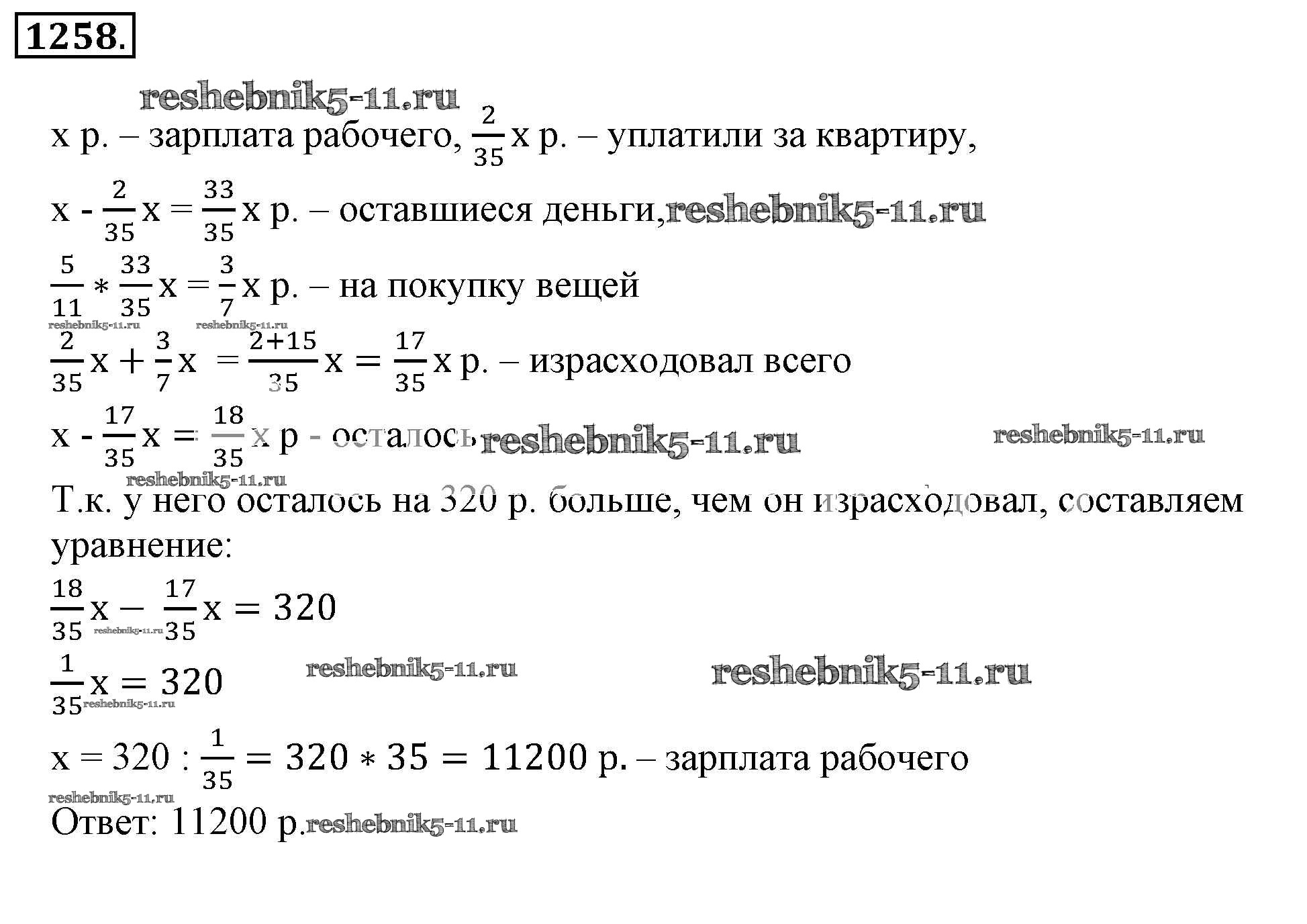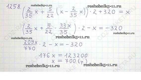 Готовая домашняя работа с ответами по Математике за 6 класс Никольский, Потапов, Решетников, Шевкин Учебник МГУ - школе Просвещение 2014 ФГОС - Номера 1258