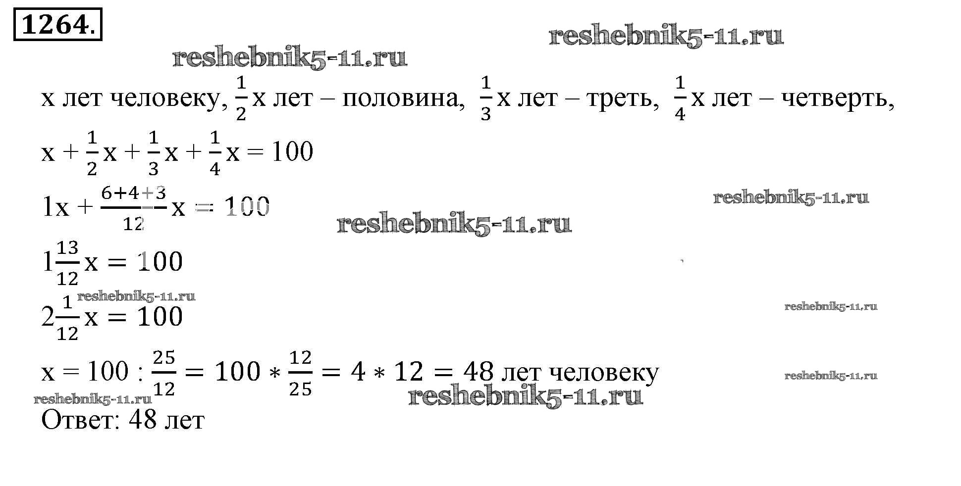 Готовая домашняя работа с ответами по Математике за 6 класс Никольский, Потапов, Решетников, Шевкин Учебник МГУ - школе Просвещение 2014 ФГОС - Номера 1264