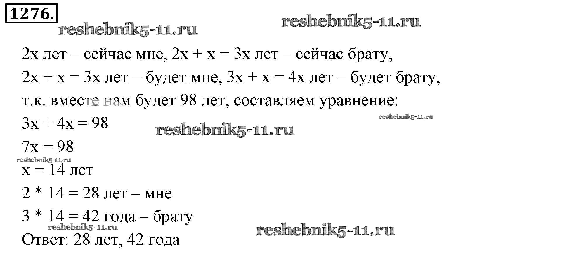 Готовая домашняя работа с ответами по Математике за 6 класс Никольский, Потапов, Решетников, Шевкин Учебник МГУ - школе Просвещение 2014 ФГОС - Номера 1276