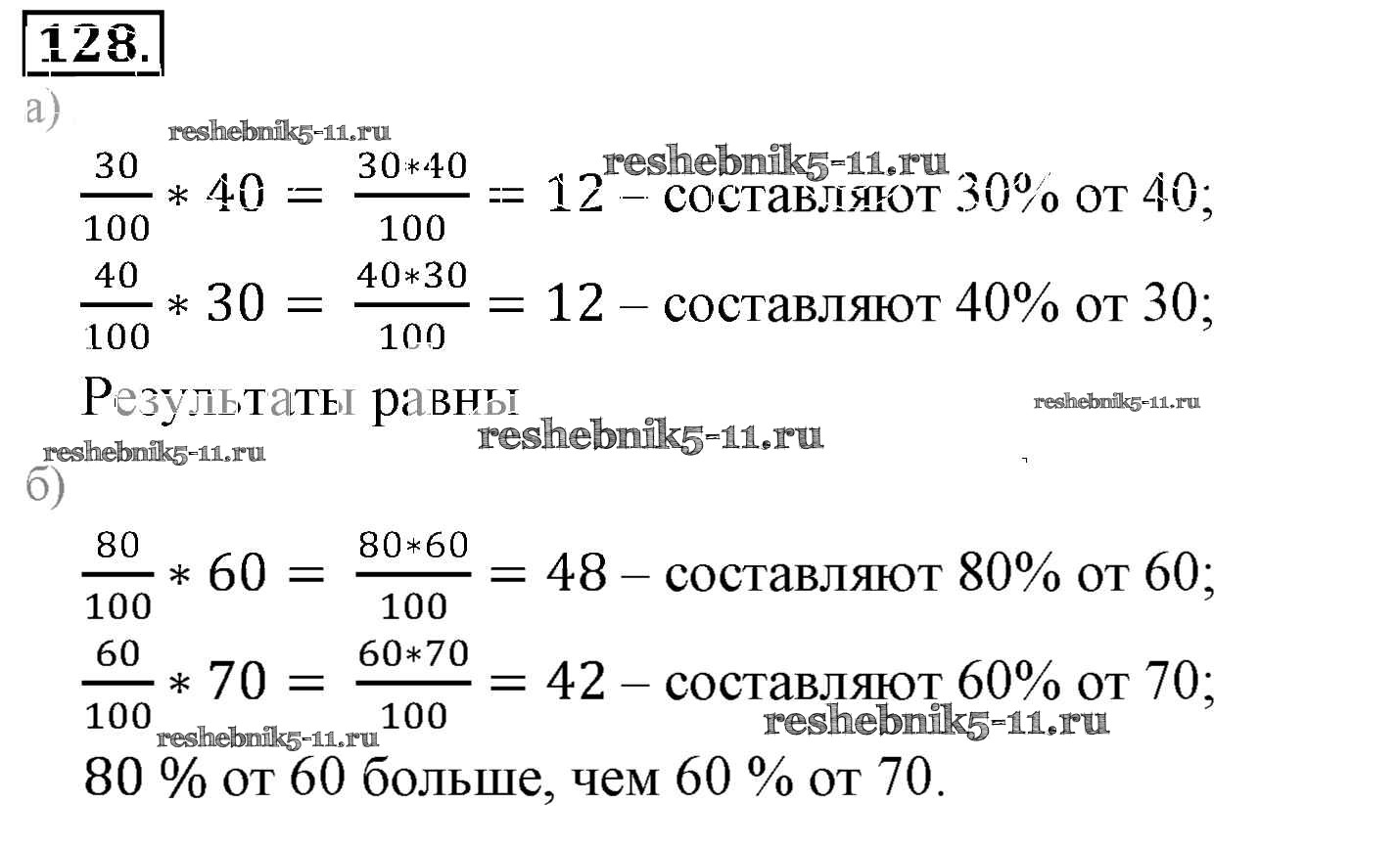 Готовая домашняя работа с ответами по Математике за 6 класс Никольский, Потапов, Решетников, Шевкин Учебник МГУ - школе Просвещение 2014 ФГОС - Номера 128