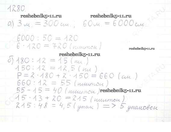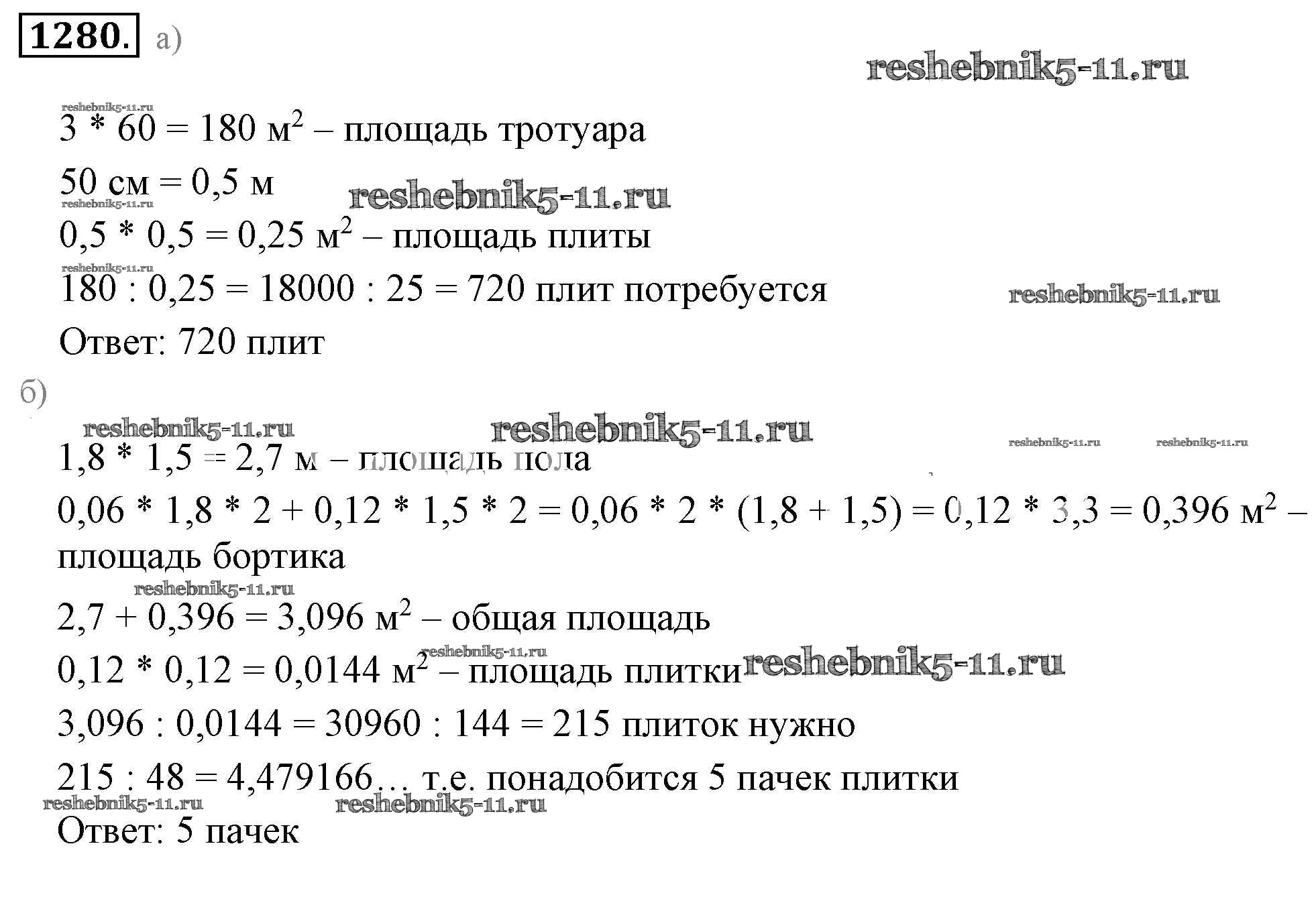 Готовая домашняя работа с ответами по Математике за 6 класс Никольский, Потапов, Решетников, Шевкин Учебник МГУ - школе Просвещение 2014 ФГОС - Номера 1280