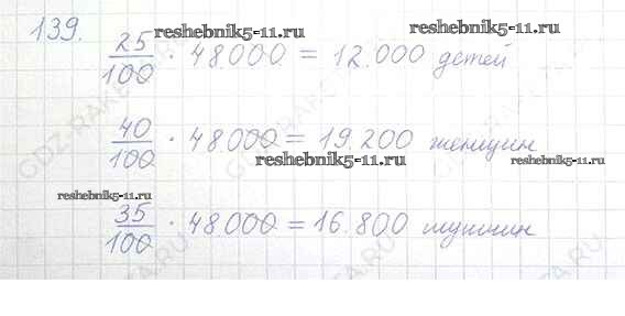 Готовая домашняя работа с ответами по Математике за 6 класс Никольский, Потапов, Решетников, Шевкин Учебник МГУ - школе Просвещение 2014 ФГОС - Номера 139