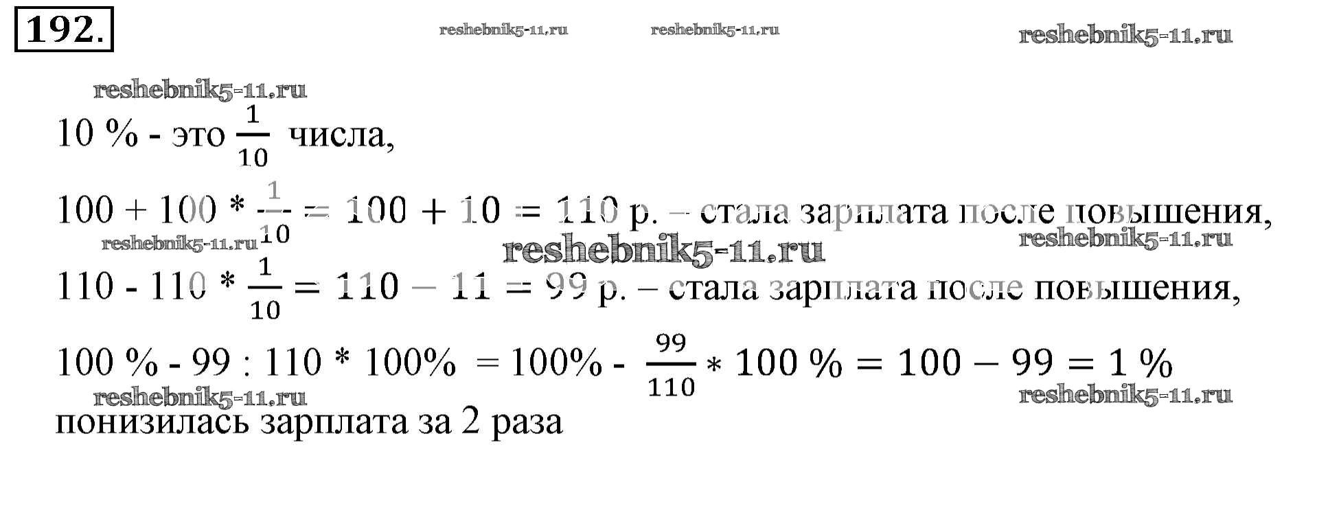 Готовая домашняя работа с ответами по Математике за 6 класс Никольский, Потапов, Решетников, Шевкин Учебник МГУ - школе Просвещение 2014 ФГОС - Номера 192