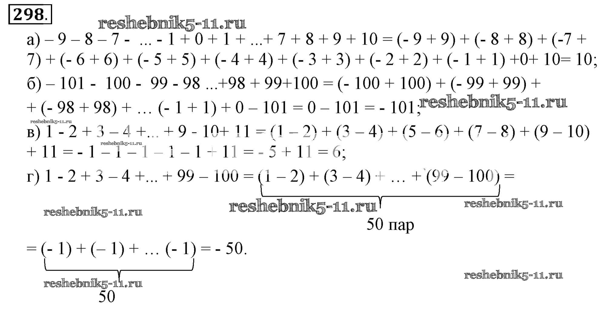 Готовая домашняя работа с ответами по Математике за 6 класс Никольский, Потапов, Решетников, Шевкин Учебник МГУ - школе Просвещение 2014 ФГОС - Номера 298