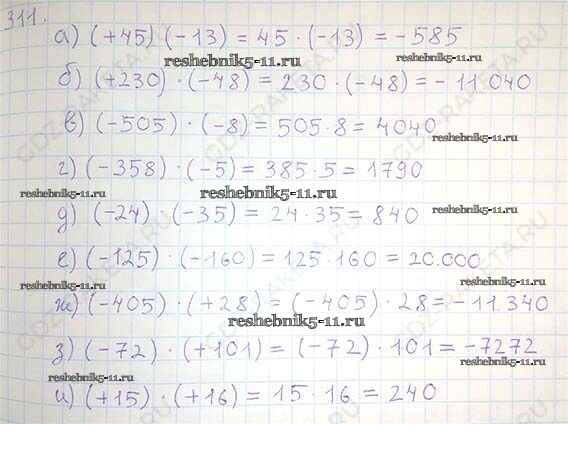 Готовая домашняя работа с ответами по Математике за 6 класс Никольский, Потапов, Решетников, Шевкин Учебник МГУ - школе Просвещение 2014 ФГОС - Номера 311