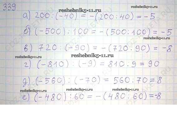 Готовая домашняя работа с ответами по Математике за 6 класс Никольский, Потапов, Решетников, Шевкин Учебник МГУ - школе Просвещение 2014 ФГОС - Номера 339