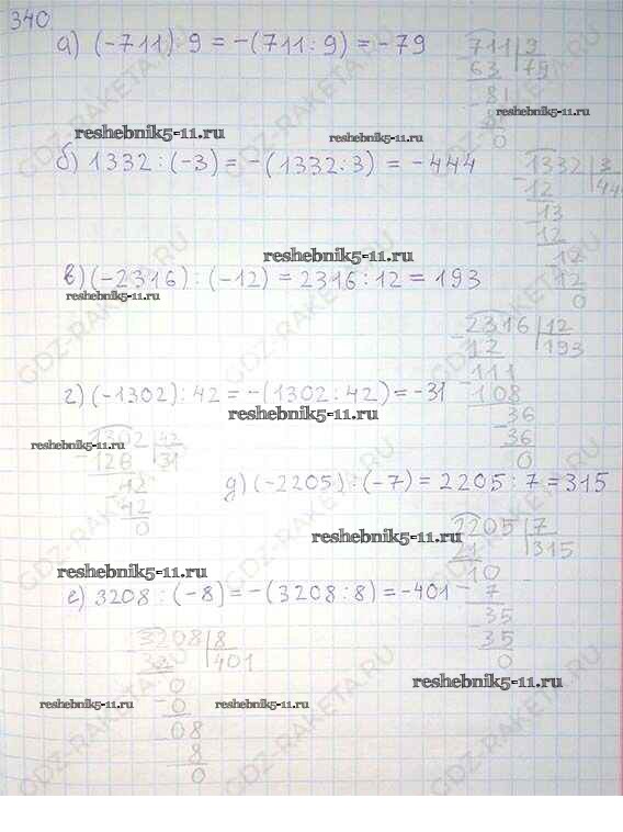 Готовая домашняя работа с ответами по Математике за 6 класс Никольский, Потапов, Решетников, Шевкин Учебник МГУ - школе Просвещение 2014 ФГОС - Номера 340