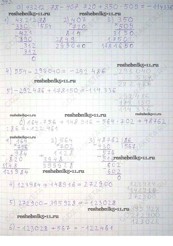 Готовая домашняя работа с ответами по Математике за 6 класс Никольский, Потапов, Решетников, Шевкин Учебник МГУ - школе Просвещение 2014 ФГОС - Номера 343
