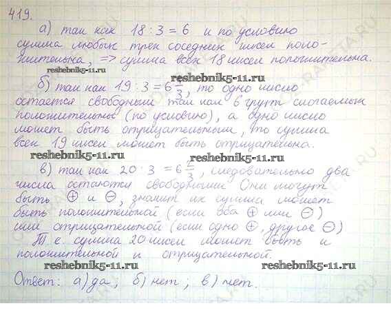 Готовая домашняя работа с ответами по Математике за 6 класс Никольский, Потапов, Решетников, Шевкин Учебник МГУ - школе Просвещение 2014 ФГОС - Номера 419