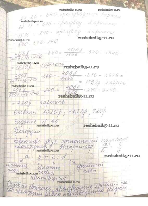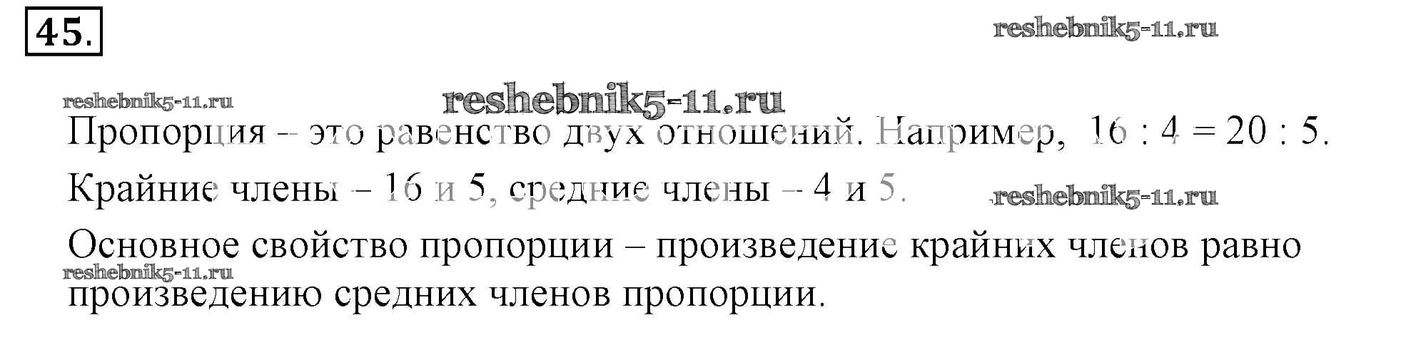 Готовая домашняя работа с ответами по Математике за 6 класс Никольский, Потапов, Решетников, Шевкин Учебник МГУ - школе Просвещение 2014 ФГОС - Номера 45