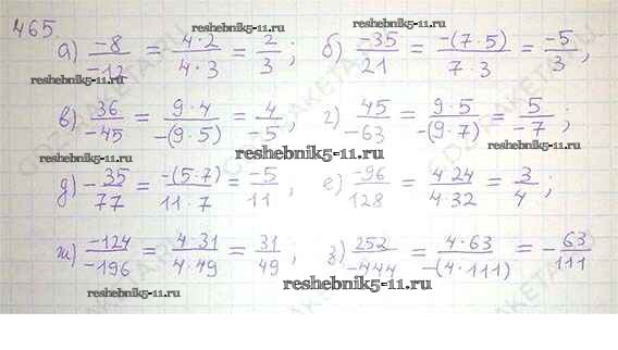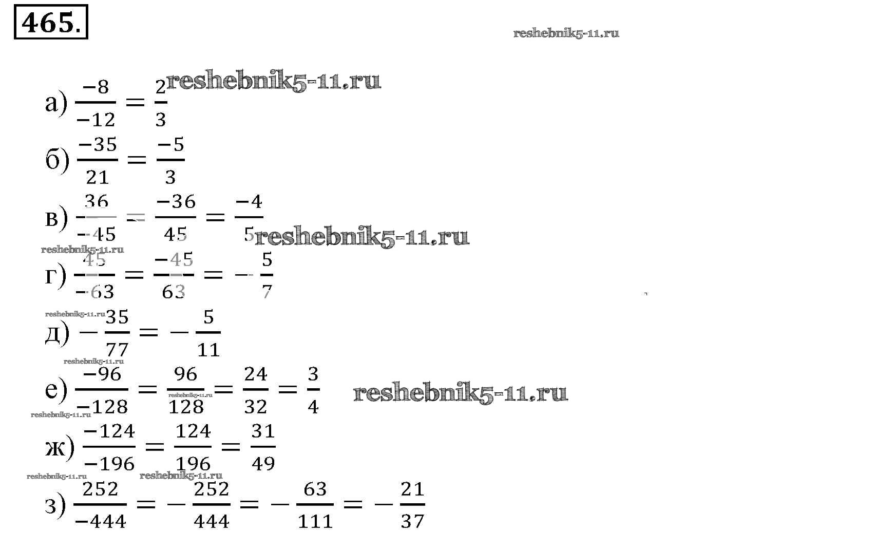 Готовая домашняя работа с ответами по Математике за 6 класс Никольский, Потапов, Решетников, Шевкин Учебник МГУ - школе Просвещение 2014 ФГОС - Номера 465