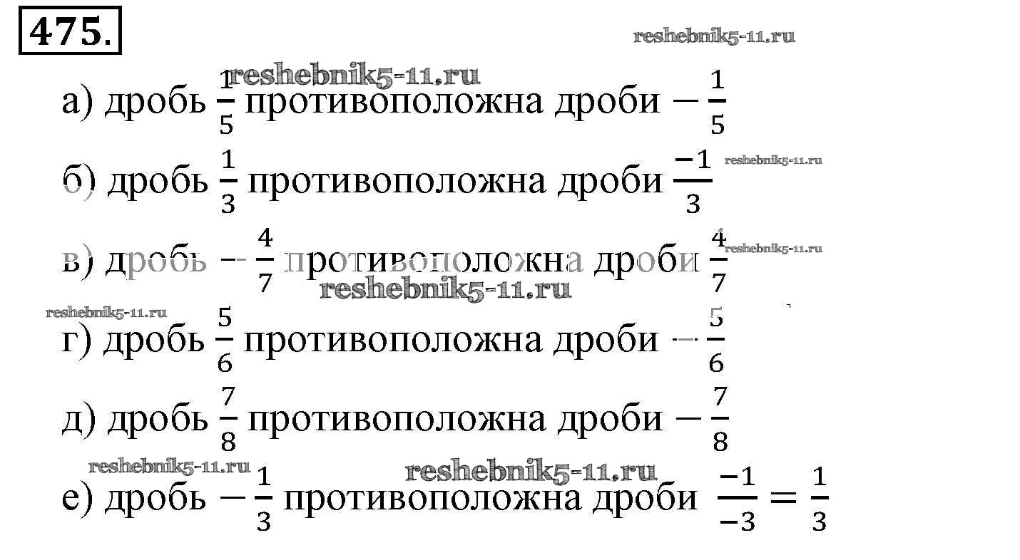 Готовая домашняя работа с ответами по Математике за 6 класс Никольский, Потапов, Решетников, Шевкин Учебник МГУ - школе Просвещение 2014 ФГОС - Номера 475