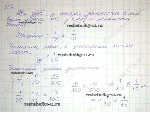 Готовая домашняя работа с ответами по Математике за 6 класс Никольский, Потапов, Решетников, Шевкин Учебник МГУ - школе Просвещение 2014 ФГОС - Номера 496
