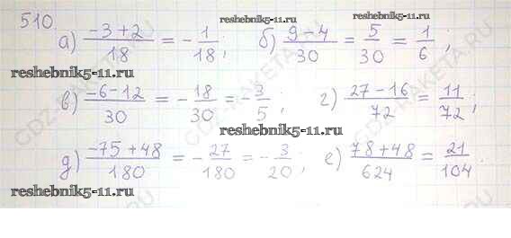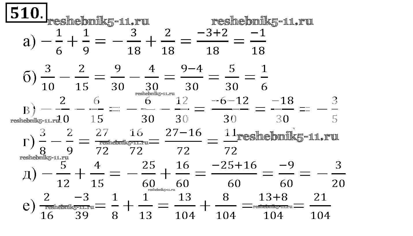 Готовая домашняя работа с ответами по Математике за 6 класс Никольский, Потапов, Решетников, Шевкин Учебник МГУ - школе Просвещение 2014 ФГОС - Номера 510