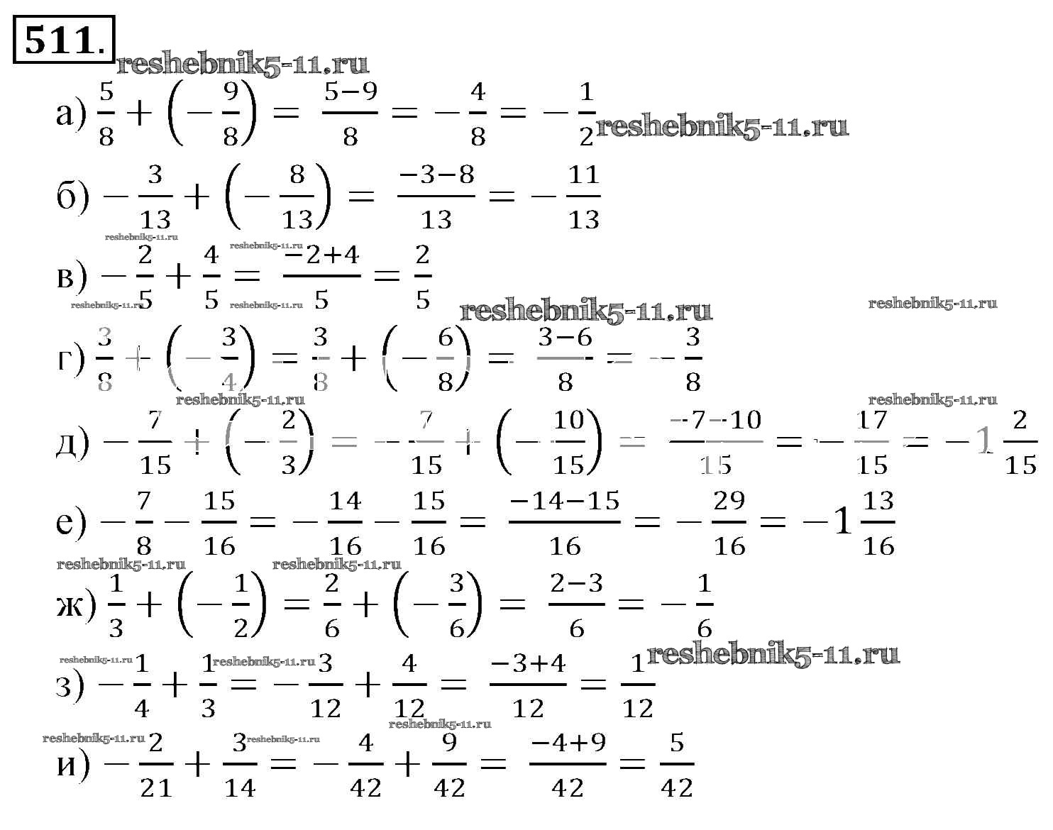 Готовая домашняя работа с ответами по Математике за 6 класс Никольский, Потапов, Решетников, Шевкин Учебник МГУ - школе Просвещение 2014 ФГОС - Номера 511