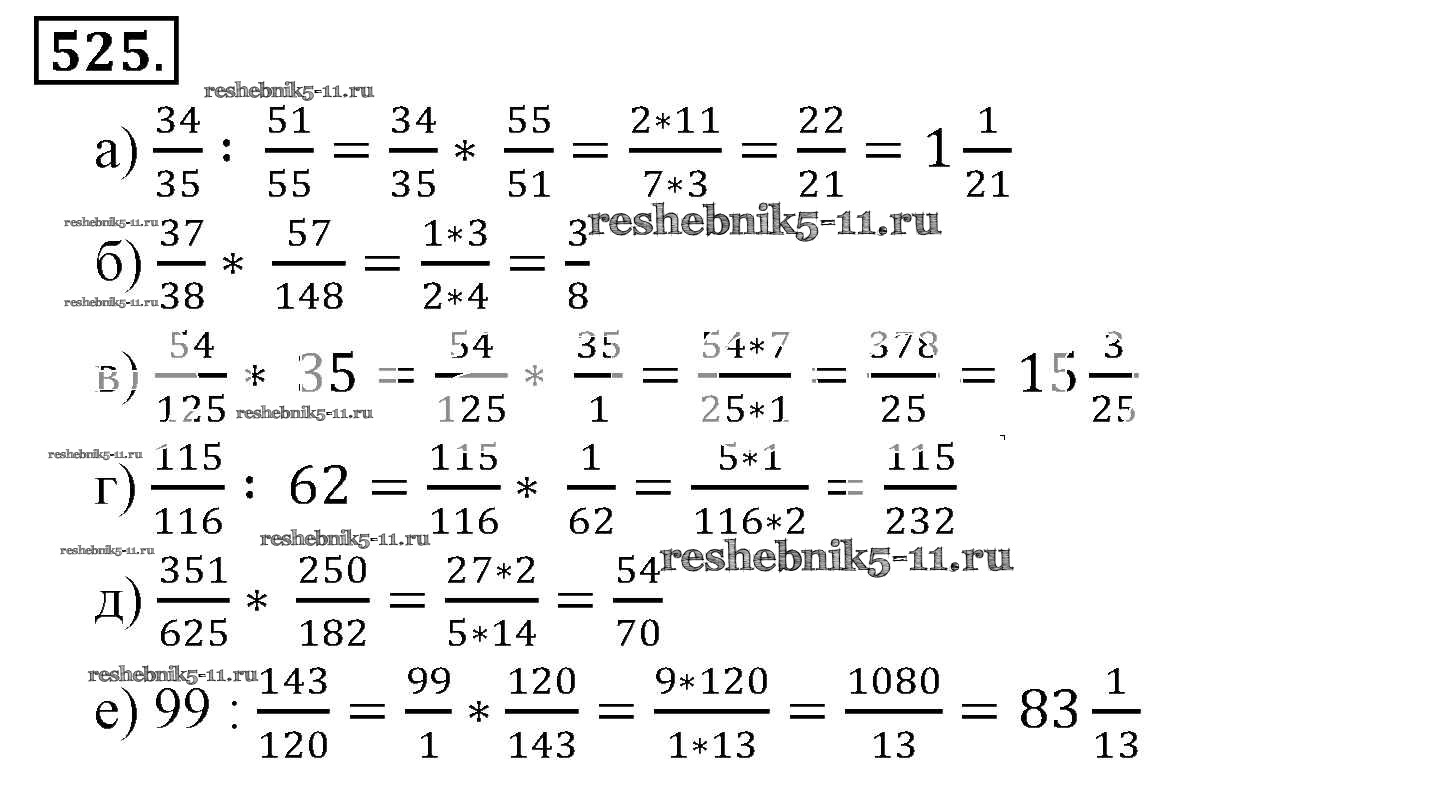 Готовая домашняя работа с ответами по Математике за 6 класс Никольский, Потапов, Решетников, Шевкин Учебник МГУ - школе Просвещение 2014 ФГОС - Номера 525